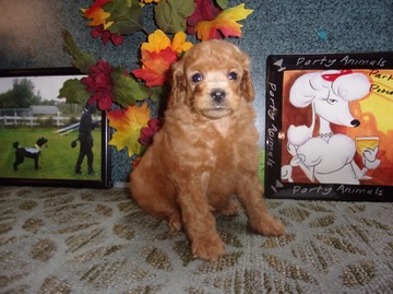 MistyMorning and Gustaf, small Moyens, had their first litter together. We have 7 beautiful multicolors who will probably be brindle or sable like our Gustaf who is mostly German Klein Pudel lines. MistyMorning is the daughter of Jasper and MinnieMouse. There are 5 boys and 2 girls. Sables, like blues and silvers, are born black but soon start showing a color change and they will clear to a lighter body color with darker ears. Taking deposits now.